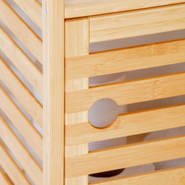 La estantería de bamboo aportan calidez al baño y soportan perfectamente las salpicaduras. El bambú es un material natural y duradero ideal para espacios húmedos. El excelente tratamiento de prevención del moho hace que no sea fácil que se enmohezca en el baño.